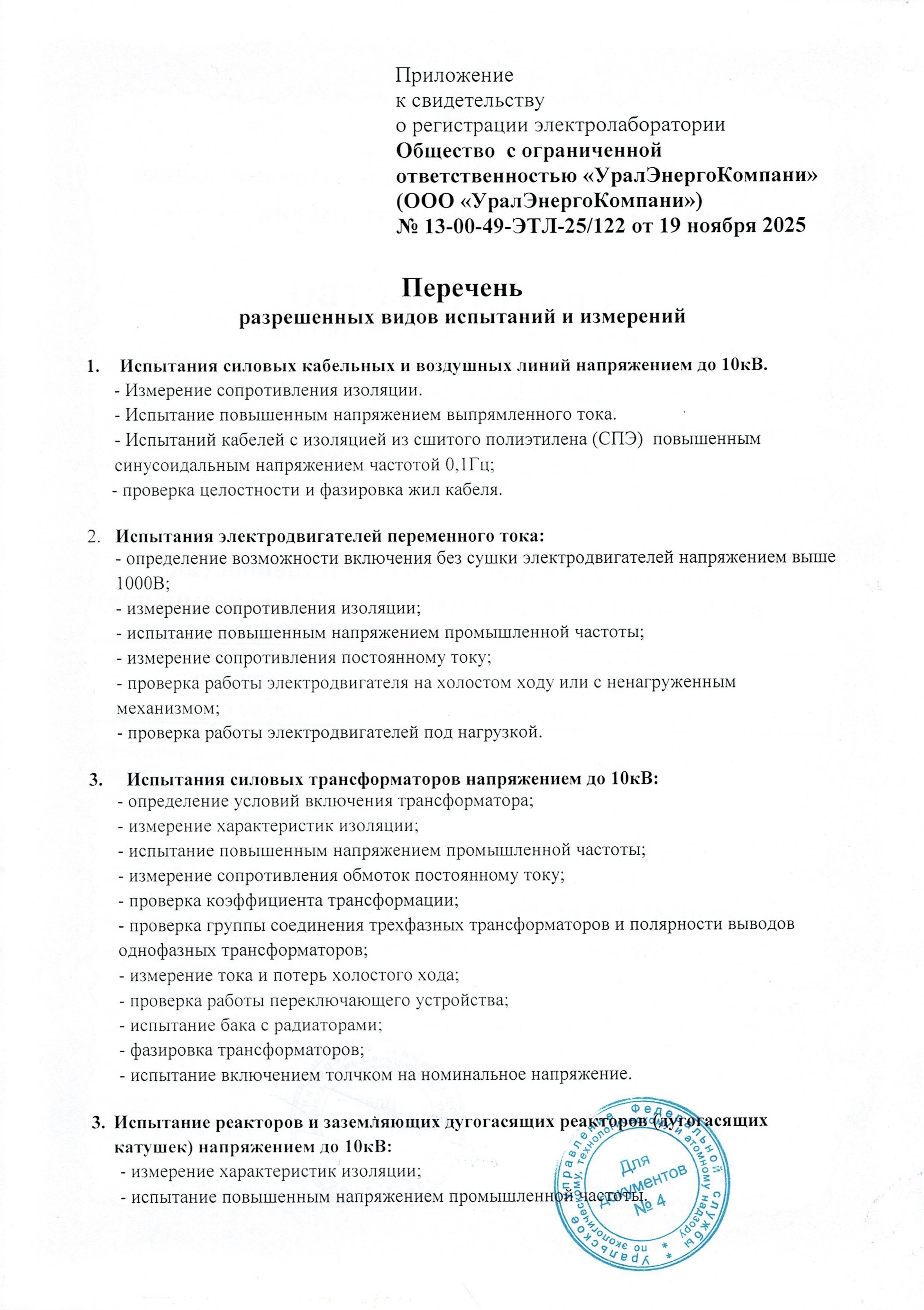 Свидетельство о регистрации электролаборатории УралЭнергоКомпани